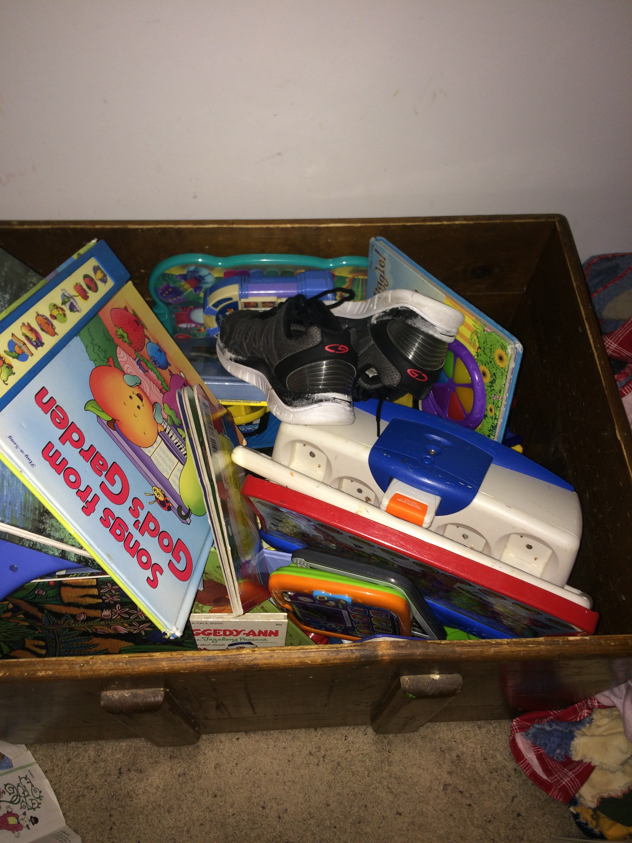 The toy box is a favorite place,