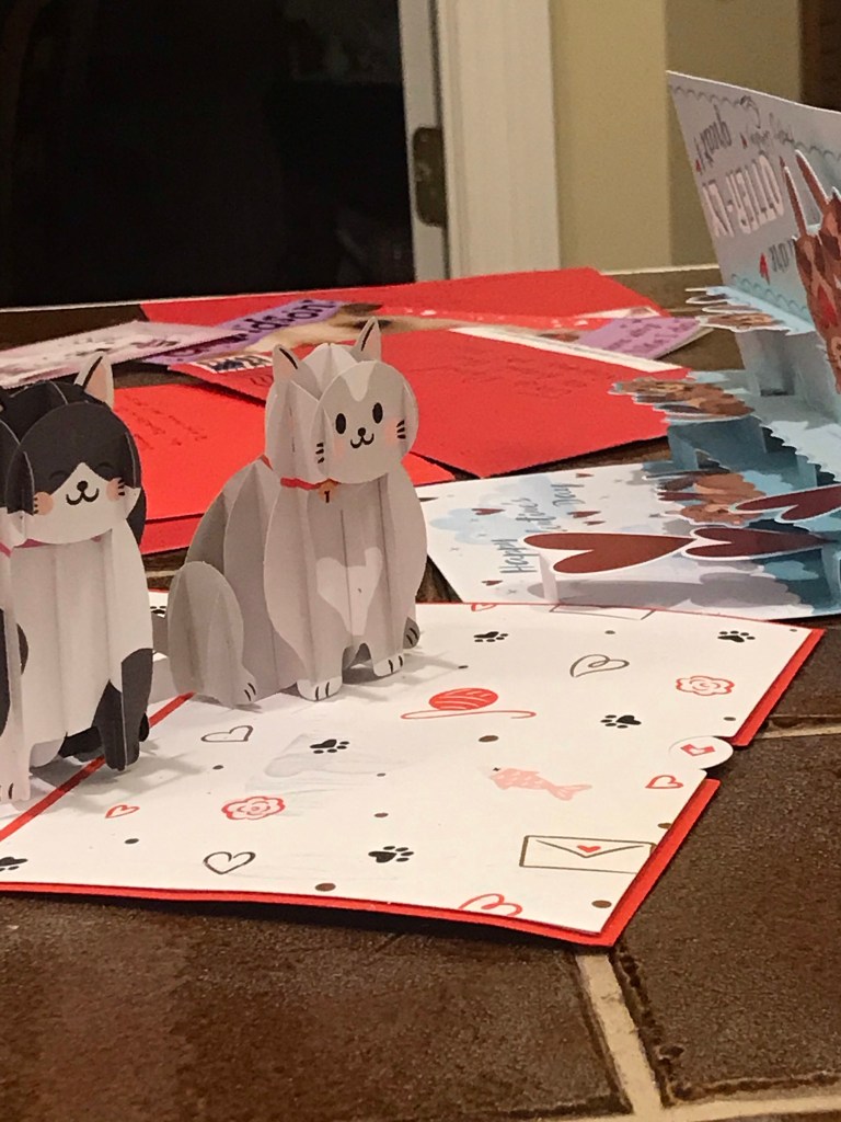 He got a package one day with a new shirt. And an early Valentine’s super fun pop-up card.